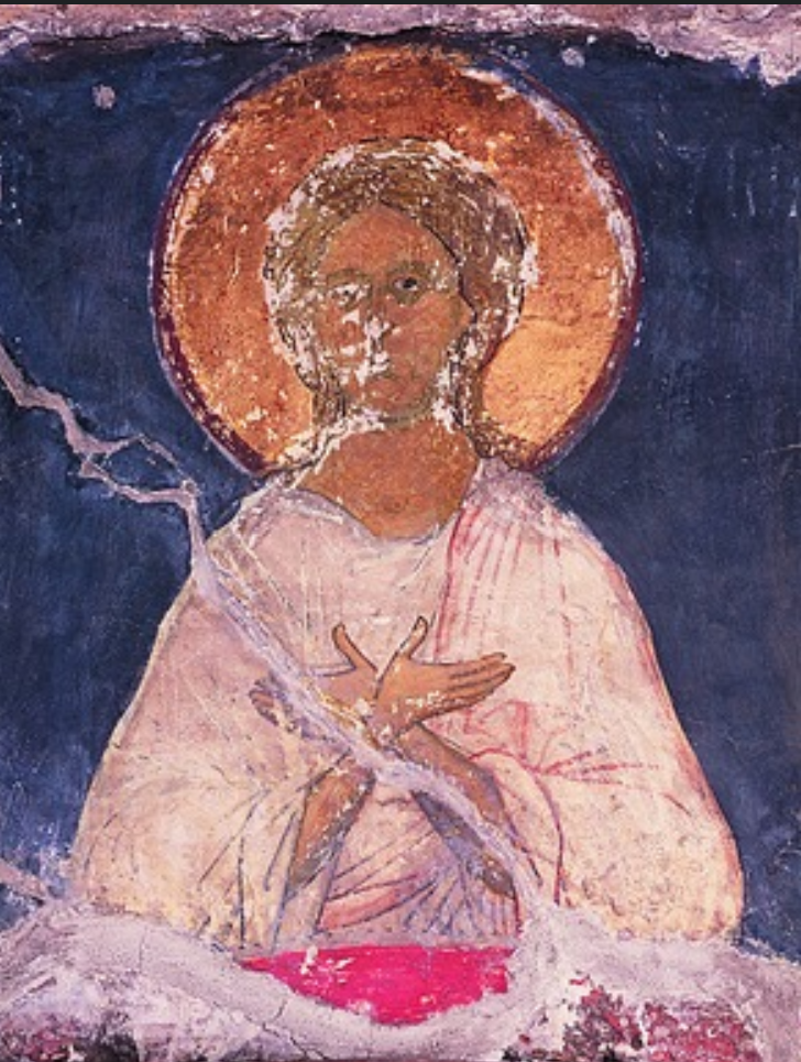 „Chrystus- Błogosławione Milczenie”. Fresk w moskiewskim Soborze Zaśnięcia Matki Bożej (1481 lub 1513–1515), umieszczony na przegrodzie ołtarzowej nad wejściem do północnej kaplicy Piotra i Pawła.